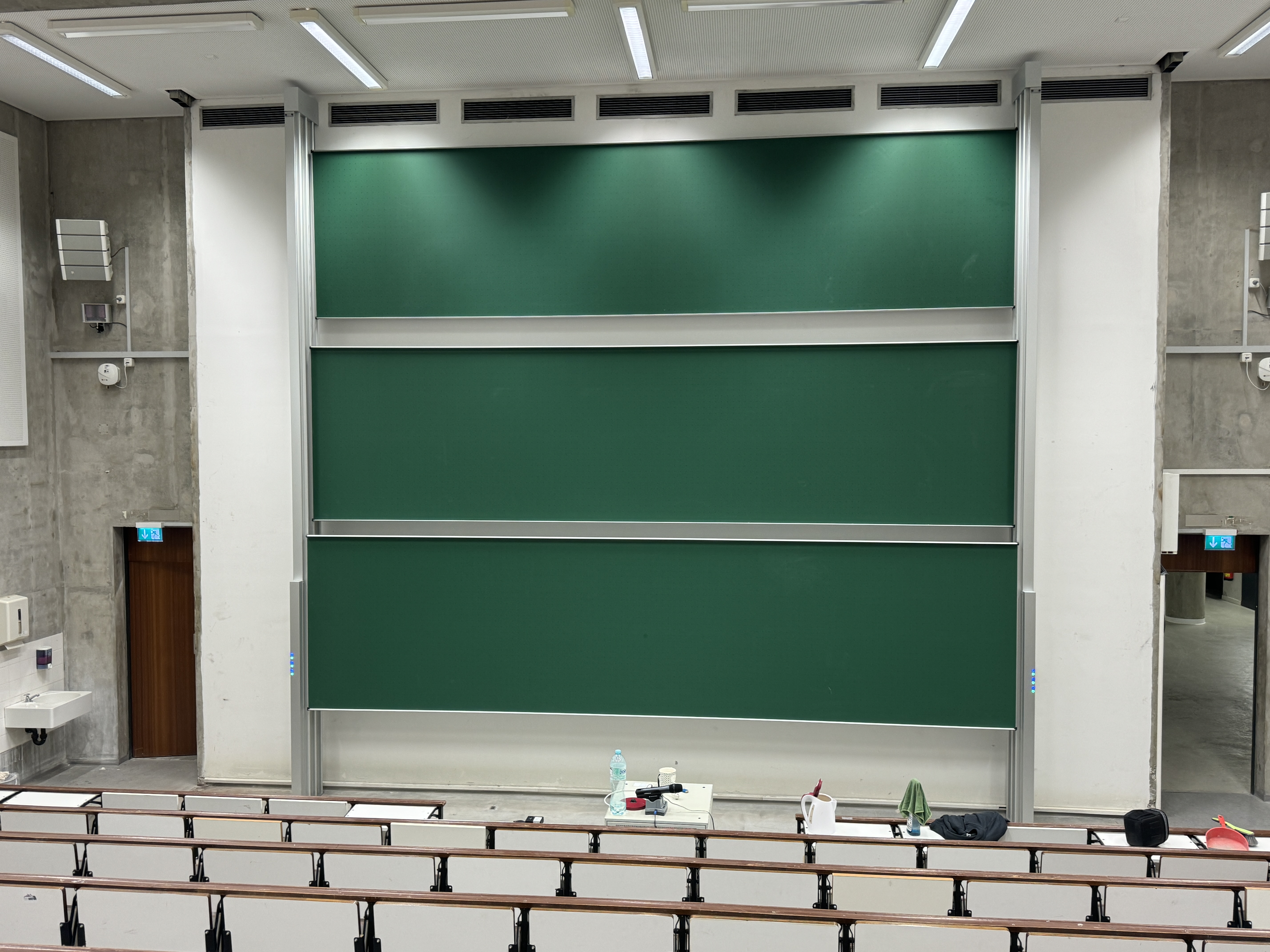 An der TU-Bremen wurde eine komplett neue audiovisuelle Hörsaal-Ausstattung realisiert. Dafür haben die Tafelanlage mit elektrischer Doppel-Schiebetafel und die ergänzenden Projektionsflächen inkl. der Beamer und der gesamten Ansteuerung gefertigt, geliefert und montiert. Besonders war die gewünschte Farbe der Tafelflächen Anthrazit.