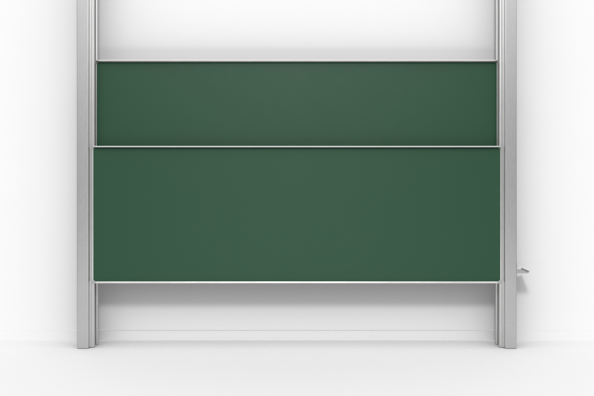 Die Tafelflächen sind zwischen den Pylonen laufend montiert. Die Pylonen selbst haben eine Standardhöhe von 2,95 m, wodurch ein großzügiger Verstellbereich gewährleistet ist. Der Wandabstand beträgt 6,5 cm, was eine platzsparende und zugleich stabile Montage erlaubt.